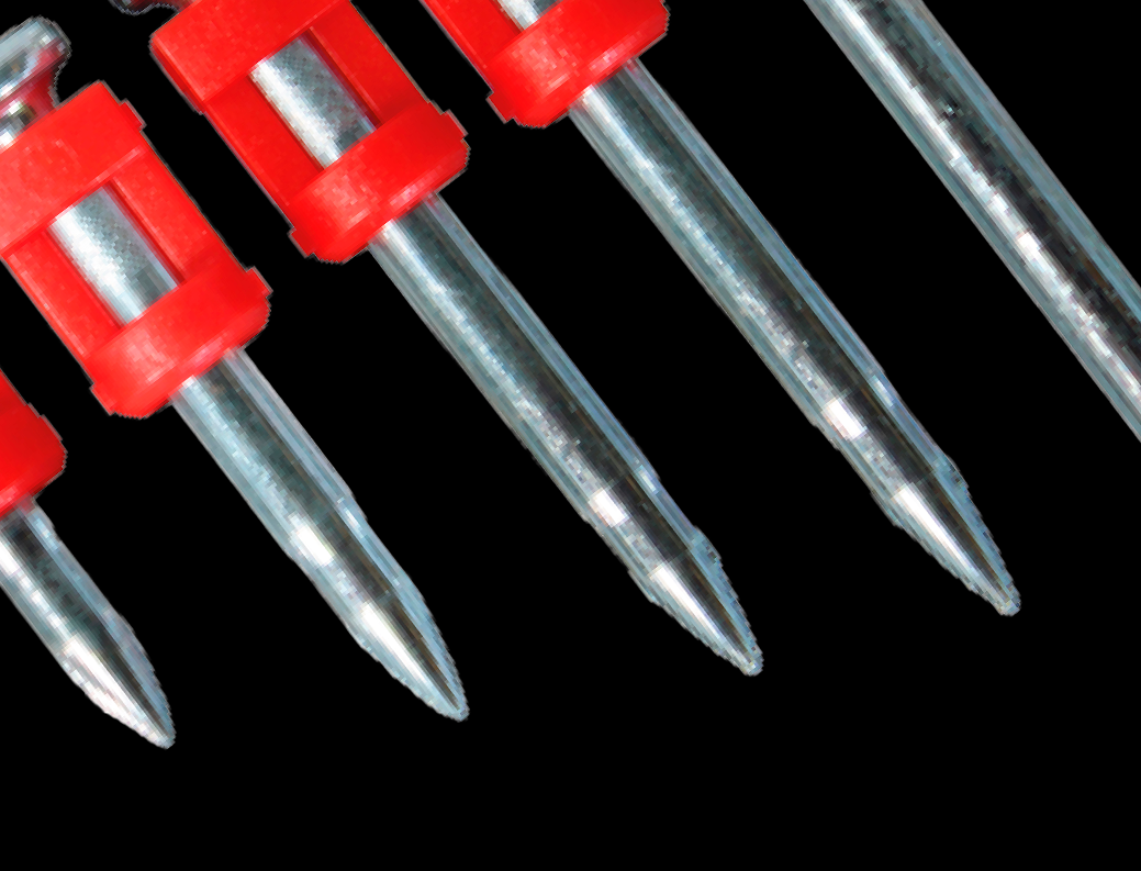 Premium collated steel nails, designed for use in hard materials such as concrete and steel, as well as softer materials.Â
